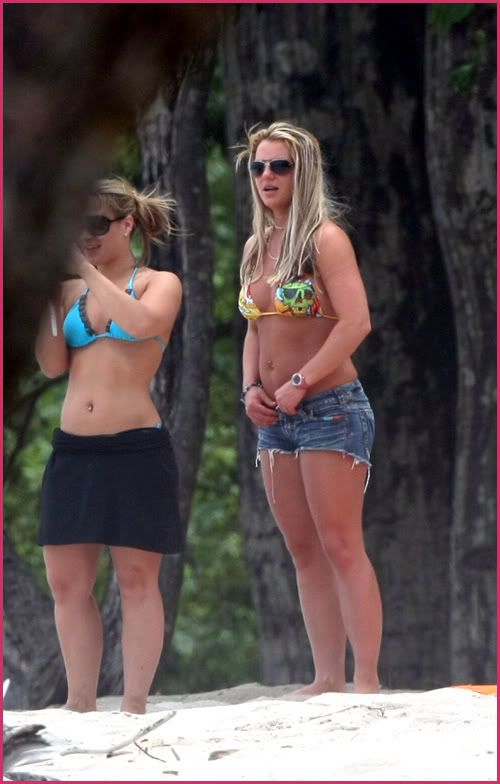 Britney Spears bounces around in a bikini while vacationing with Mel Gibson at his secluded ranch in Costa Rica on Friday.