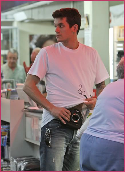 John Mayer wears his love for Mickey Mouse on his shirt as he buys some camera equipment at Samy’s camera in Los Angeles on Tuesday.