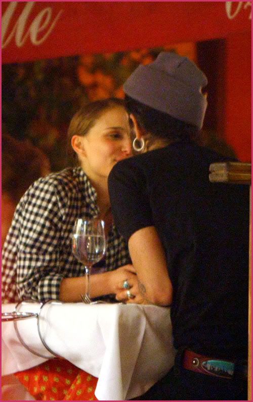 Natalie Portman and musician boyfriend Devendra Banhart share a sweet kiss while dining at La Mirabelle restaurant in Cannes, France on Wednesday.