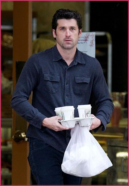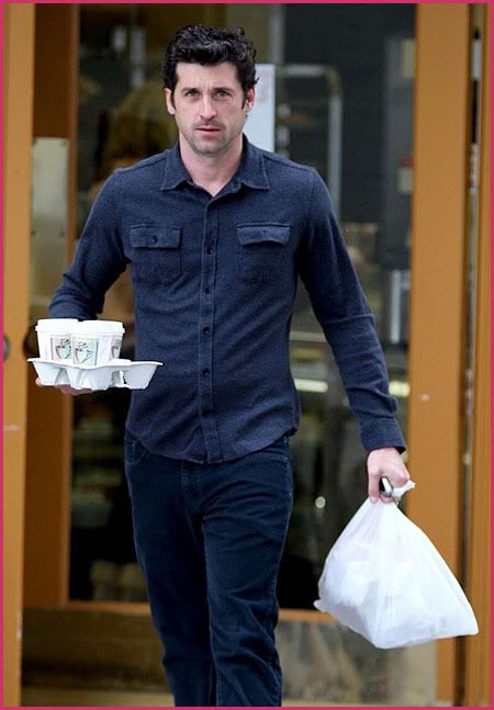Patrick Dempsey was spotted leaving a coffee shop in Los Angeles on Friday, with both hands full.